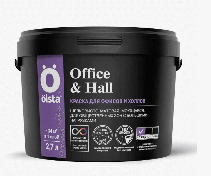 Шелковисто-матовая акриловая краска создана для тех мест, где нужна надежность: детские комнаты, коридоры, офисы. Покрытие получается идеально гладким, не трескается и легко выдерживает частую влажную уборку. Наносится без брызг и подтеков, быстро разравнивается. Подходит для стен в детских и медицинских учреждениях — сертифицирована по экологическим стандартам. Паропроницаемая, дышащая, легкая в уходе. Подойдет как для жилых, так и коммерческих помещений.